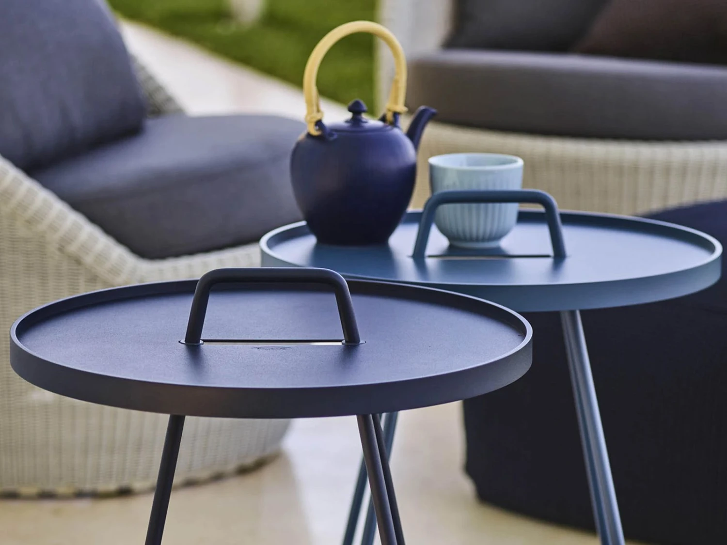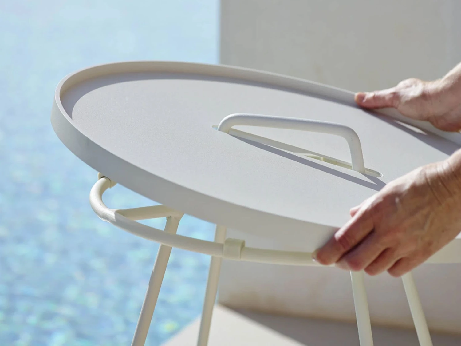 This coffee table with a light and elegant design, made of weather-resistant aluminum, is designed to withstand the outdoors all year round, and requires minimal maintenance. It expresses Danish design at its best, comfortable and of high quality. Thanks to its various finishes, and to the removable plate that can become a serving tray, this coffee table will immediately be the absolute protagonist of any environment, from the patio to the swimming pool.