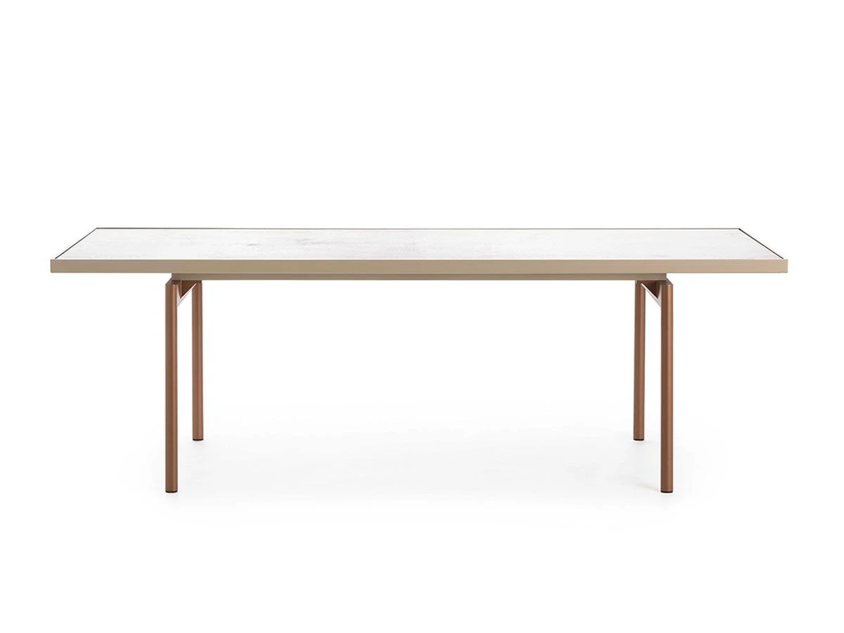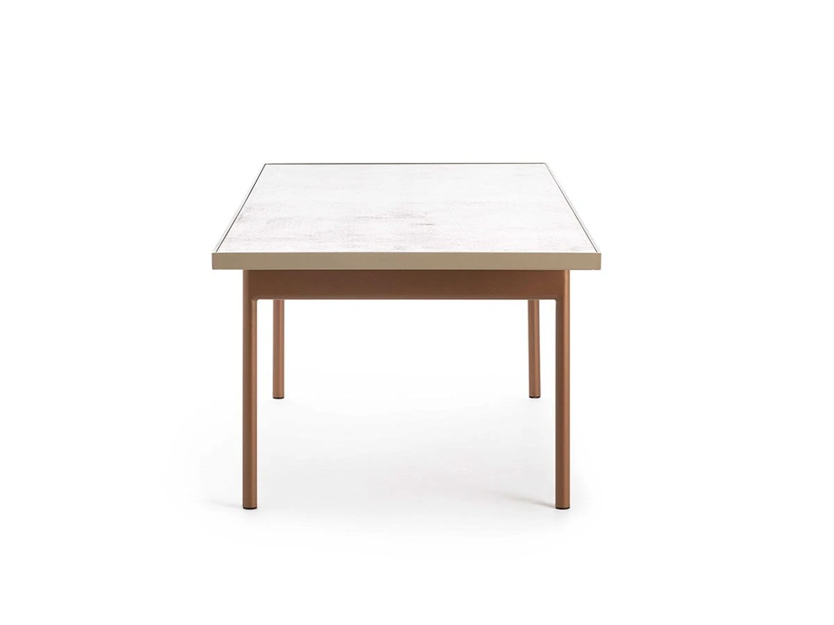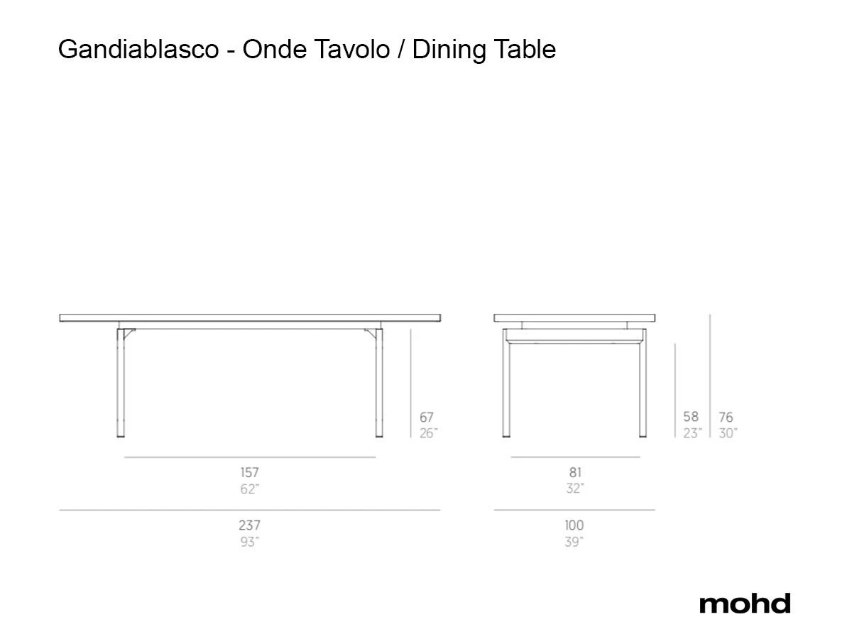 Comfort, a feeling of relaxation and coziness are the characteristics of this refined line. Onde is a hybrid between a working space and a recreational space, both indoors and outdoors. The structure in welded aluminium and corrugated sheet metal are the protagonists of the entire collection, available in powder-coated GandiaBlasco colors. While, the top is made of the innovative ultra-compact Dekton® by Cosentino surface, which is highly resistant to scratches and stains and whose color does not fade over time thanks to its resistance to ultraviolet (UV) rays.