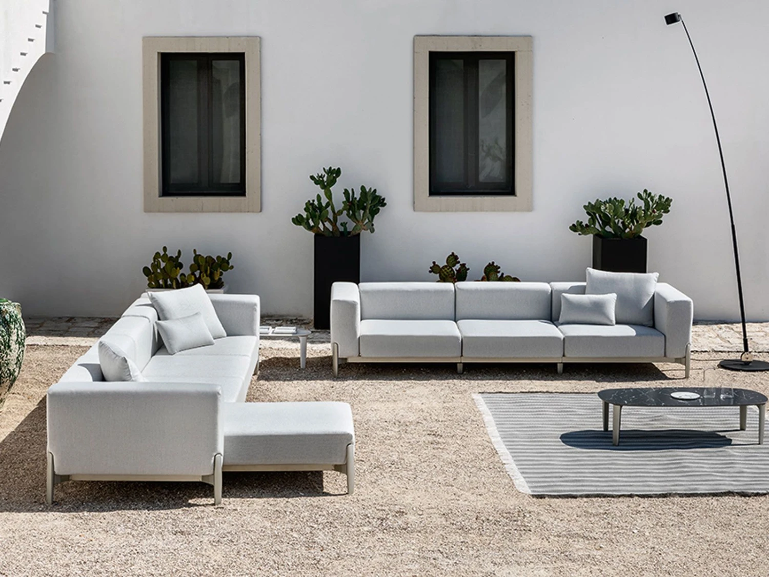 The Push collection is characterized by the refined cleanliness of the shapes and the formal and almost architectural rigor of the seats. The cast aluminum leg that pushes on the upholstery gives that refined detail that makes the difference between normality and design. Push represents a new concept in the world of upholstery, and will be the protagonist wherever it is placed, whether it is a swimming pool, a relaxation area, a patio, or any other environment.