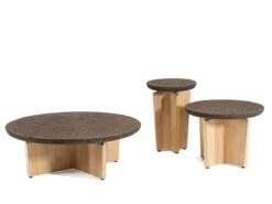 Rafael is a collection of consciously exotic lounge furnishings, which draws inspiration from the contemporary imagery, managing to capture the identity of the most evocative places on the planet; well-being and a new way of living outdoors are the goals that Rafael sets himself to achieve. Inspired by nature, whose forms remain both geometric and ever changing, Rafael transmits vital influences, amplified by the sinuous lines that contrast, creating a perfect balance, with the rigid beauty of the materials. The workmanship of teak, marble and lava stone are perfectly combined with the fine upholstery coverings, cornucopias of refined polychromies bearing the signature of Paola Navone. The collection includes lounge armchairs, lounge armchairs with coffee table, low tables and sun loungers.