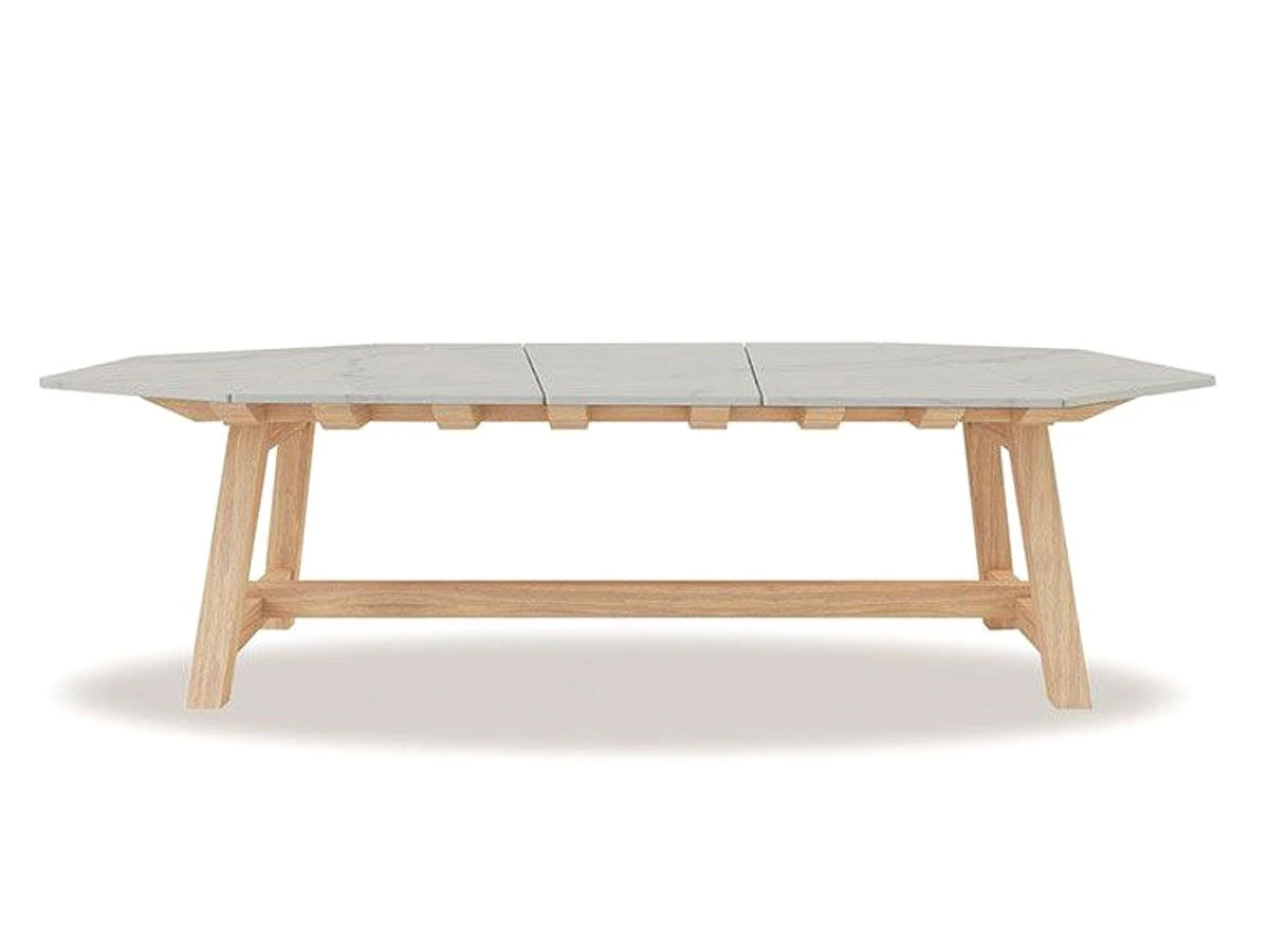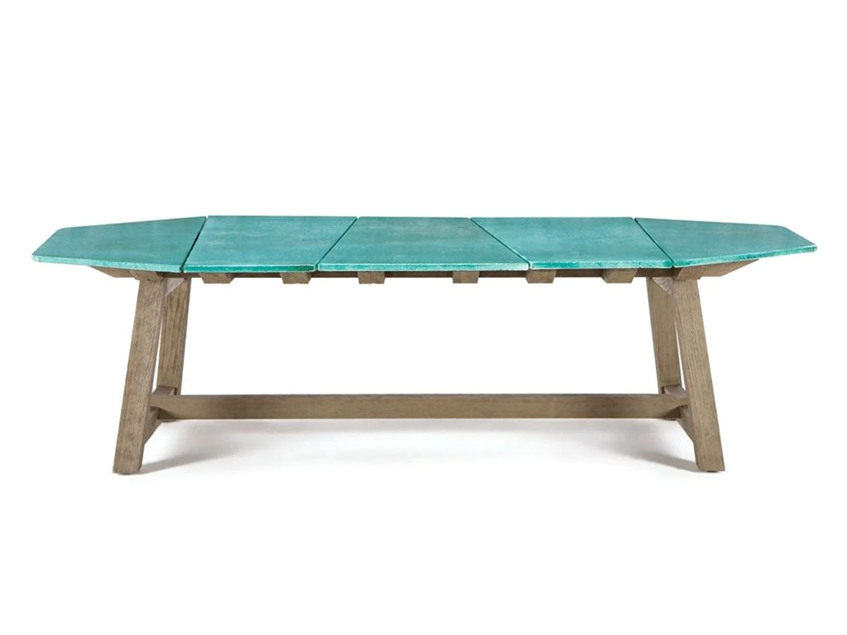 Rafael is an outdoor table from the homonymous collection designed by Paola Navone for Ethimo. Available in two finishes for the structure, Brushed Teak or Pickled Teak. Top in emerald enameled stone or statuary marble.