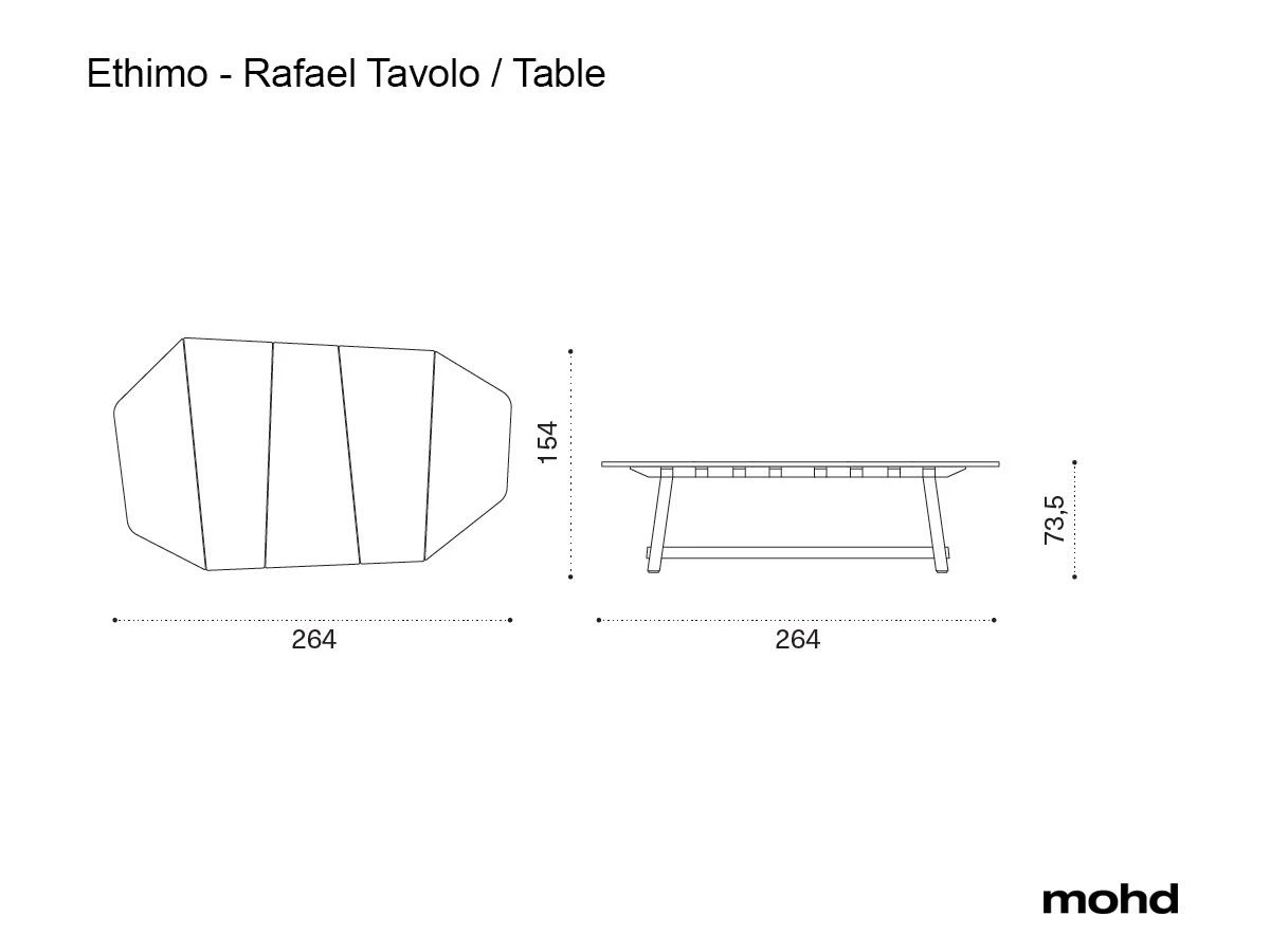 Rafael is a collection of consciously exotic lounge furnishings, which draws inspiration from the contemporary imagery, managing to capture the identity of the most evocative places on the planet; well-being and a new way of living outdoors are the goals that Rafael sets himself to achieve. Inspired by nature, whose forms remain both geometric and ever-changing, Rafael transmits vital influences, amplified by the sinuous lines that contrast, creating a perfect balance, with the rigid beauty of the materials. The workmanship of teak, marble, and lava stone is perfectly combined with the fine upholstery coverings, cornucopias of refined polychromies bearing the signature of Paola Navone. The collection includes chair, dining tables, lounge armchairs, lounge armchairs with coffee tables, low tables, and daybed.