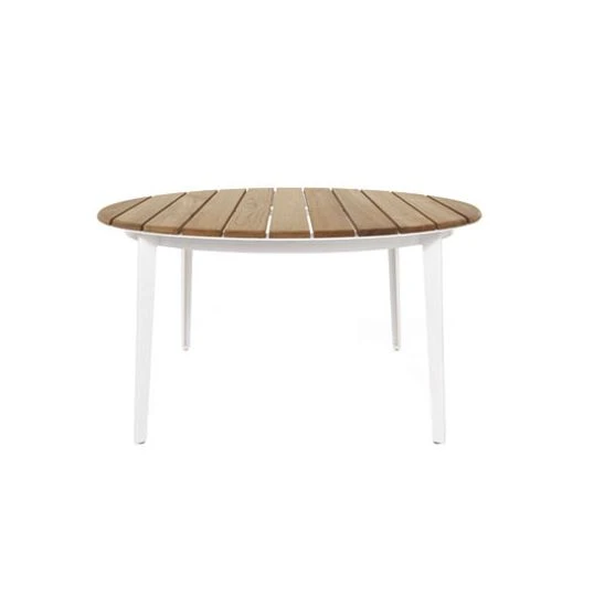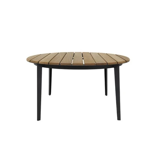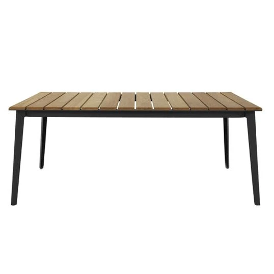 The railways are strong and withstand the ravages of the elements to ensure a comfortable and quiet. “This is the inspiration behind an outdoor table that has character and strength, clean lines and functional rigor. The legs support a steel L-shaped “L” that runs along the perimeter of the floor which are fixed teak slats.