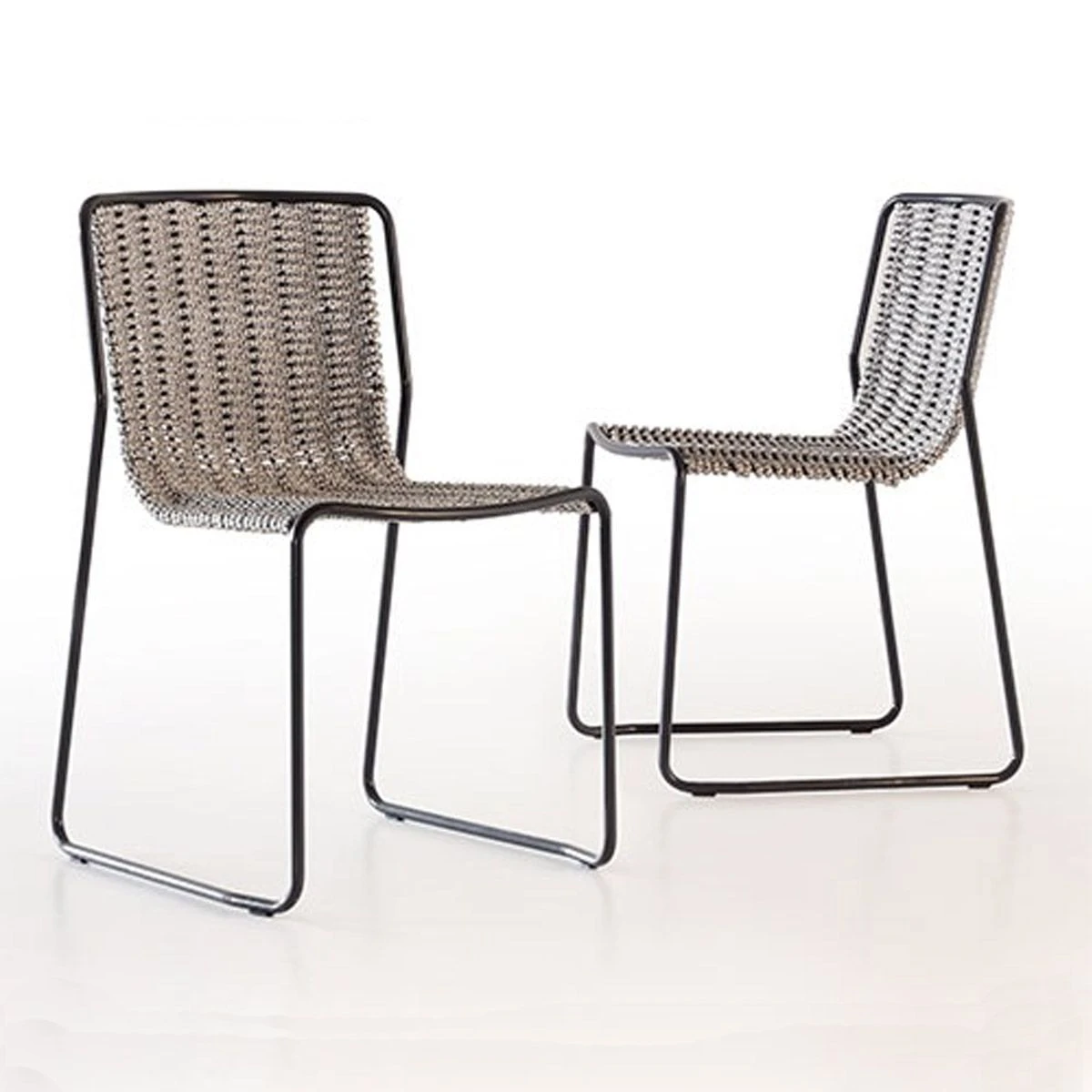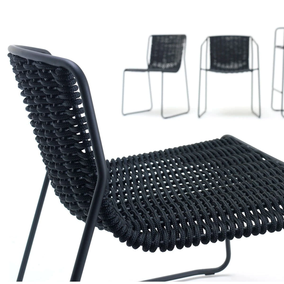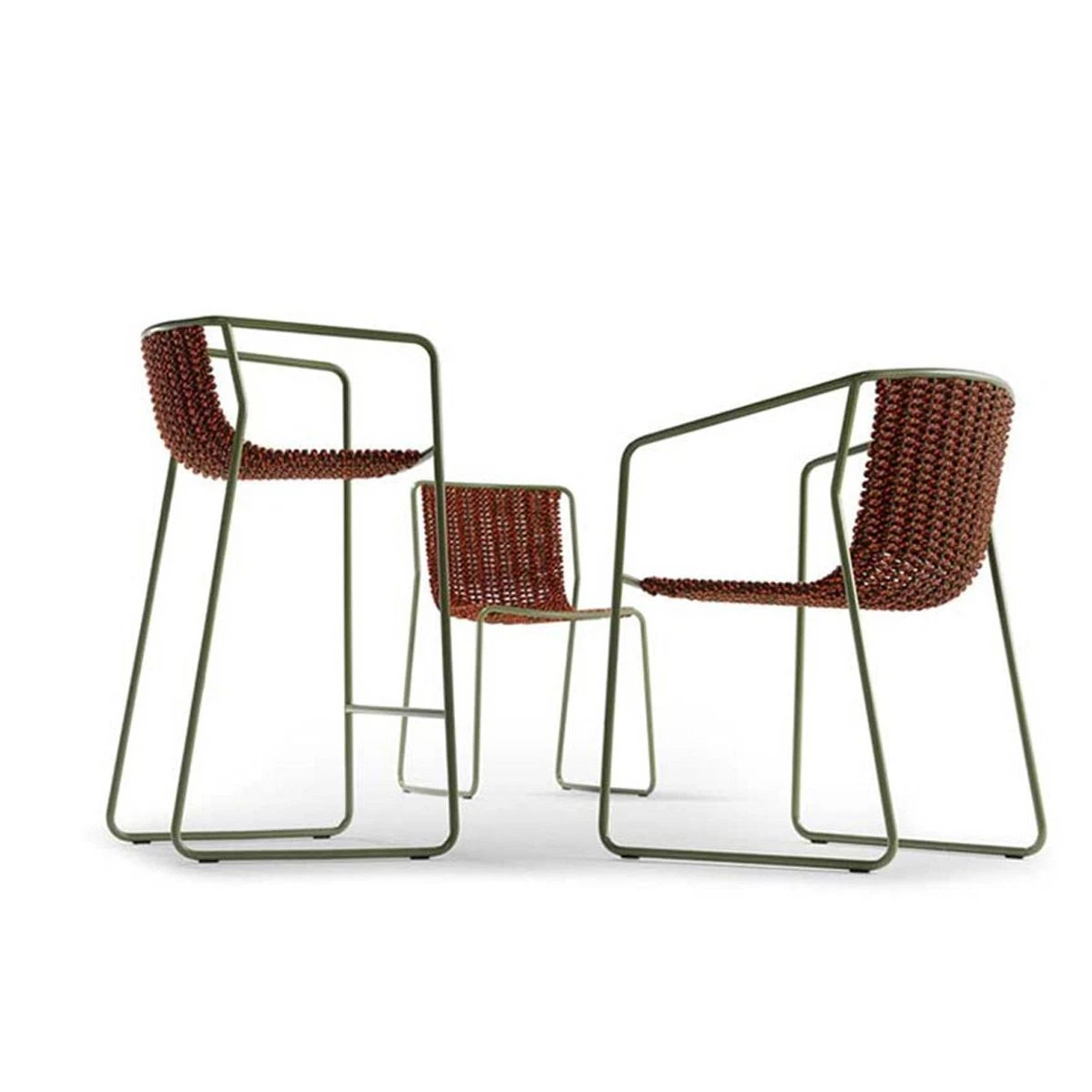 Randa stackable chair, with painted steel frame, nautical high performance rope woven seat and back, designed by LucidiPevere for Debi.
