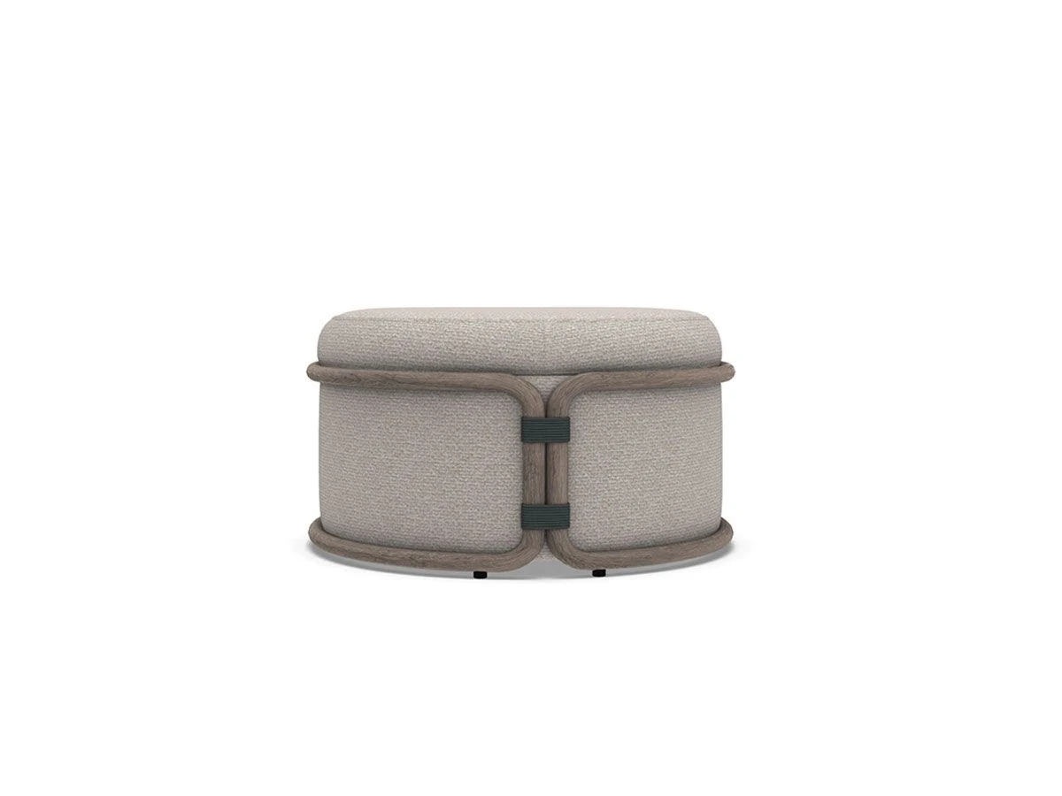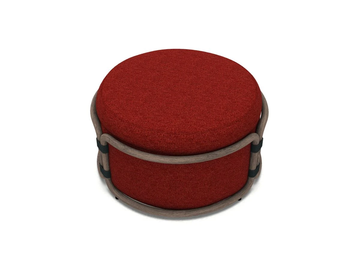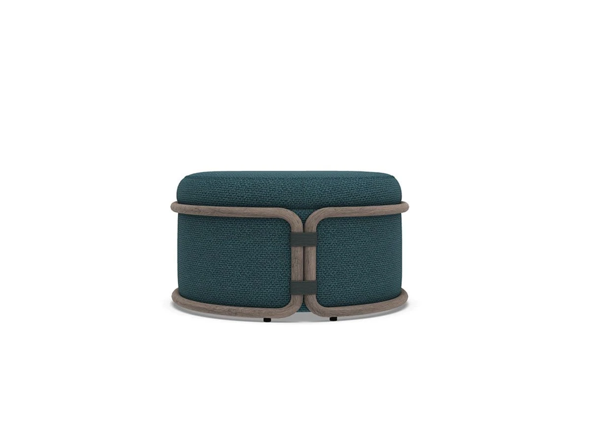 Fresh, colorful, and with an Asian flair, Rotin is the perfect range of accessories to furnish your outdoor space with flair and color, whether it be a shady patio, a garden, a poolside, or a sunny metropolitan terrace. The Rotin collection proposes a new way of experiencing outdoor moments and spaces the pouf is constructed entirely with structural technical upholstery. Pickled teak tubing, joined with nautical rope, defines the curves of the cushions. The three fabric nuances – rust, ice and aegean blue – allow the sofa to fit into any environment. Rotin guarantees a pleasant experience of comfort, which can also be enjoyed in an indoor environment.