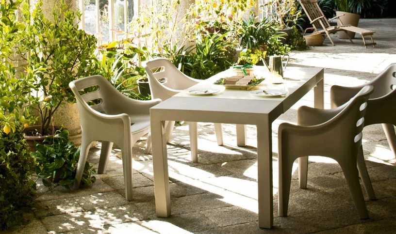 Russell is a chair that revisits in a contemporary a classic outdoor chair. You can approach it in different types of environments, from modern minimalist furniture and uniform, to rustic to highlight the contrast material. It will be easy to use it in bars or restaurants with outdoor area, revive your moments of conviviality, but also to relax.