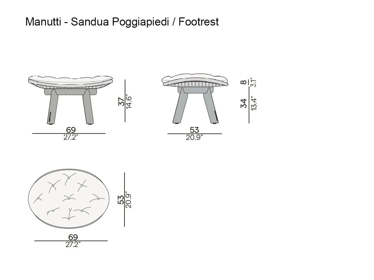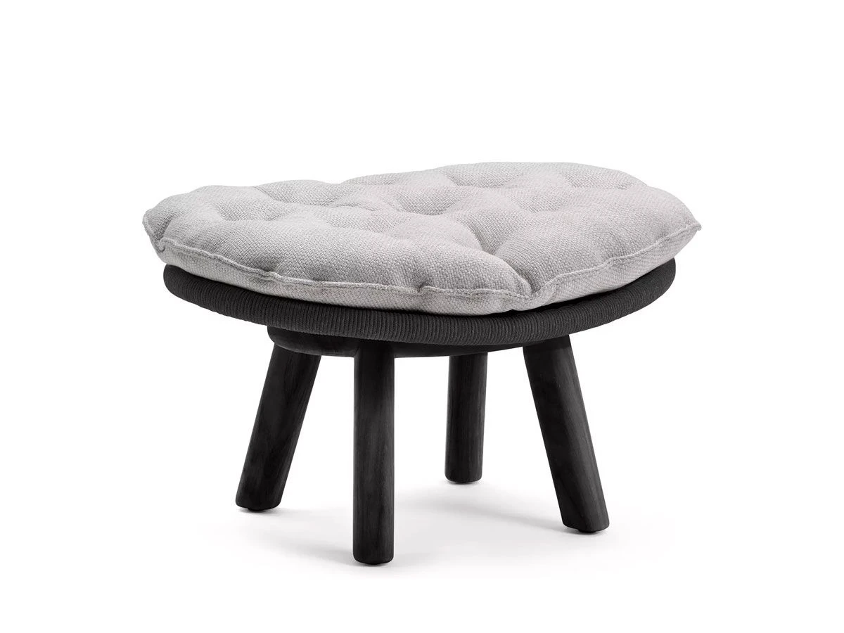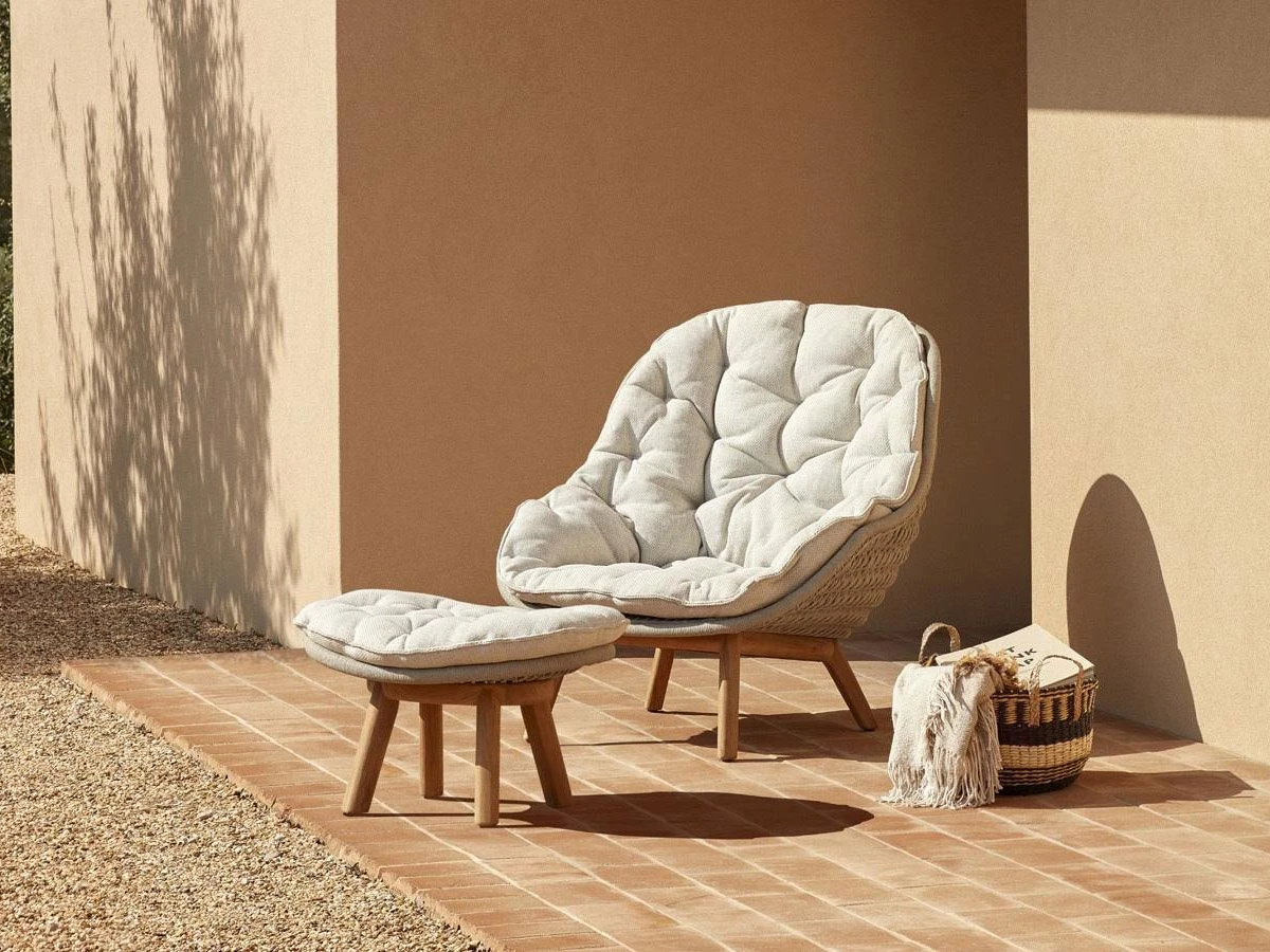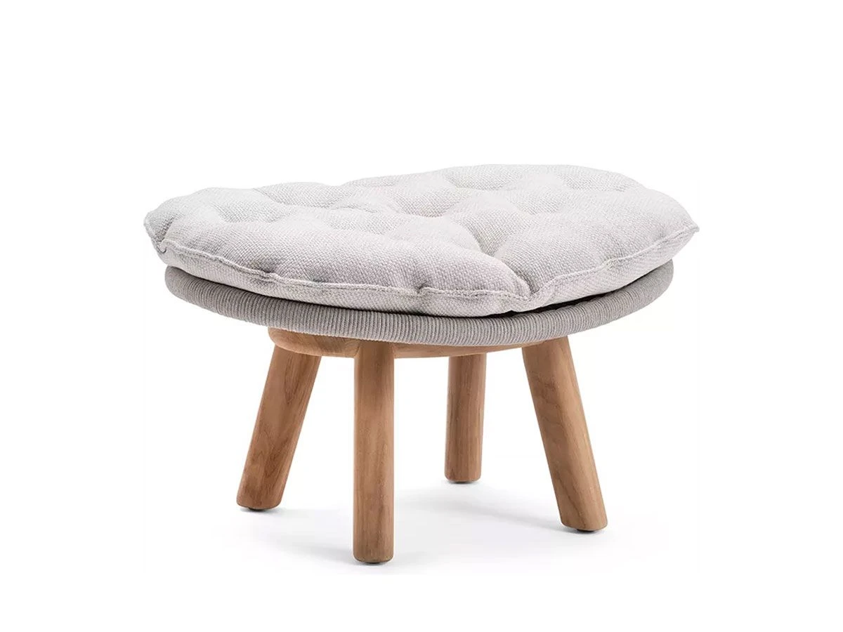 Sandua is an elegant outdoor furniture collection designed by Robert Hapelt for the Manutti brand. The series includes different elements, like a dining chair, upholstered armchairs, a footrest and a line of floor lamps. Structure in teak wood, shell in Dicord® braided rope, the cushion is covered in fabric suitable for outdoor use.