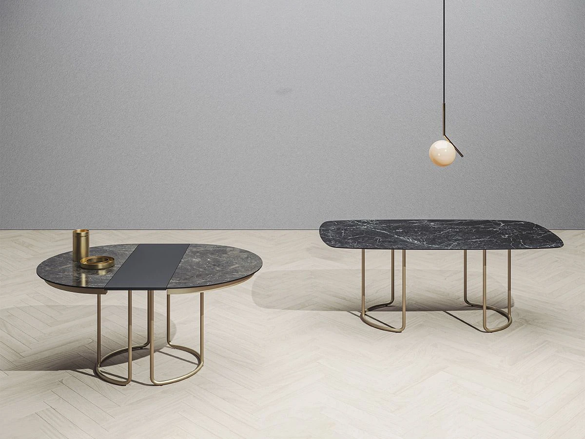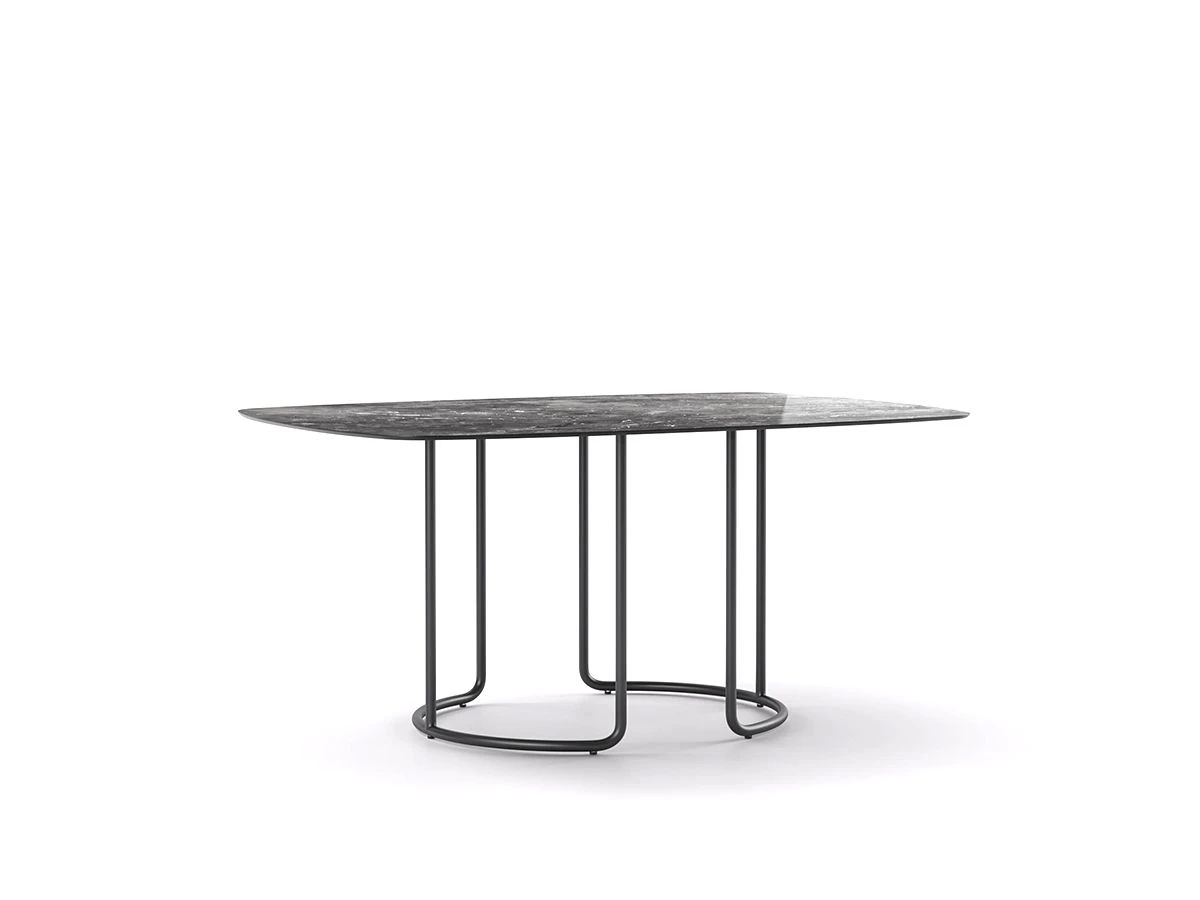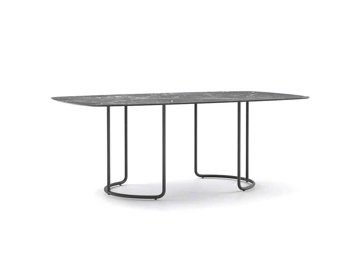 Scala Outdoor Table – Rectangular is characterised by generous shapes and wrap-around lines inspired by haute – couture tailoring. The top is supported by a light metal structure that plays with curves and continuity of lines, similar to the base of the coffee tables in the same collection. The materials have been carefully chosen to ensure that they will stand the test of time against the elements, but also to ensure that you do not renounce a refined and elegant style even in outdoor spaces.