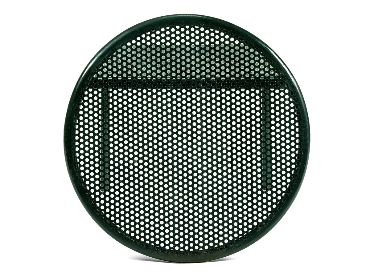 Outdoor side table with perforated top. Made of pre-galvanised steel; extra zinc treatment sprayed on the welds; powder-coated for outdoor use, dark green.