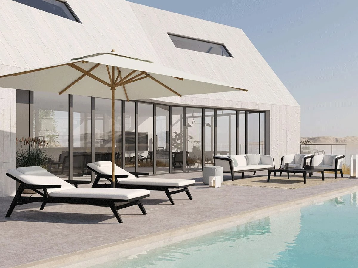 Practical and refined outdoor coffee table to combine with the furnishings of the Sunrise collection and more. Extremely versatile thanks to its clean and geometric shapes, it is perfect for any environment, whether it is a garden in a country residence, an avant-garde hotel or even a yacht. Made entirely of warm brushed natural teak or bold dark teak it is the noble material with which it is made that makes it an engaging table that invites you to sit down and take a moment to enjoy the outdoors. Extraordinarily simple at the same time of impact, Sunrise includes a complete range of furniture for both living room and dining room.