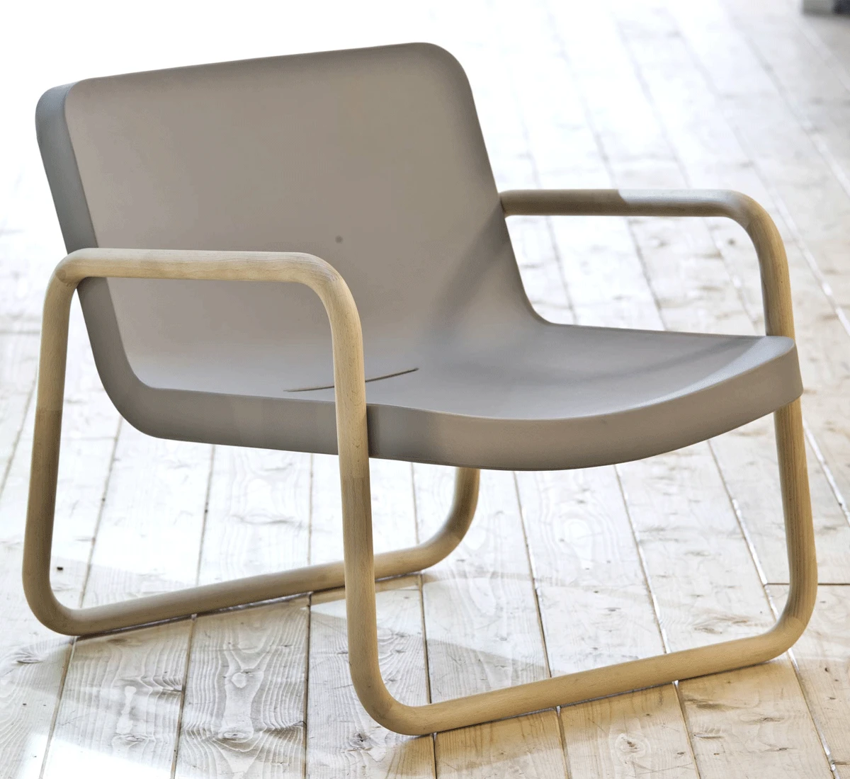 Time Out is an armchair by Rodolfo Dordoni for Serralunga, 10 stainless steel or natural beech or stained beech Iroko and polyethylene seat. UV protection, 100% recyclable, shock resistance.