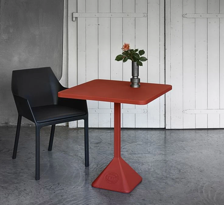TNP has been designed by designer to decorate the Théâtre National Populaire, it is one of the most prestigious cultural institutions in France. The cast iron base, customized with the logo of the theater, says a plan to form a square. From the industrial flavor, highly evocative with its shape and materials but also versatile, very resistant and functional, TNP is a furnishing item that is ready, with its eye-catching personality, to be a protagonist in the widest variety of settings, from homes to the contract sector.