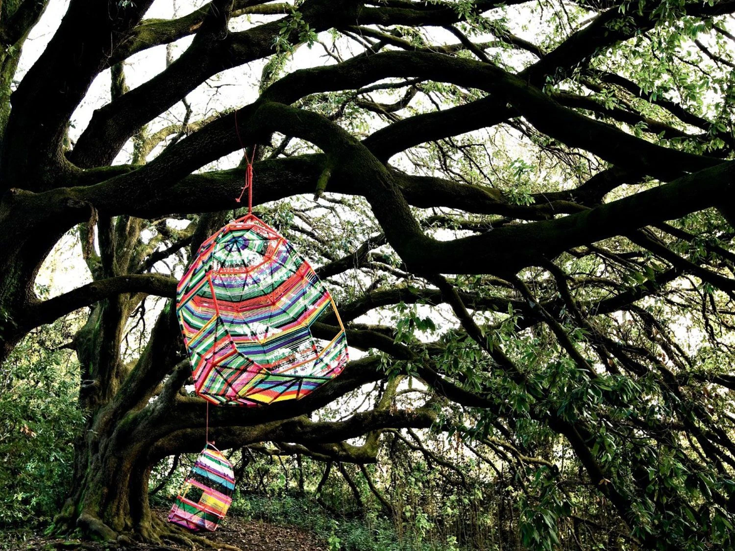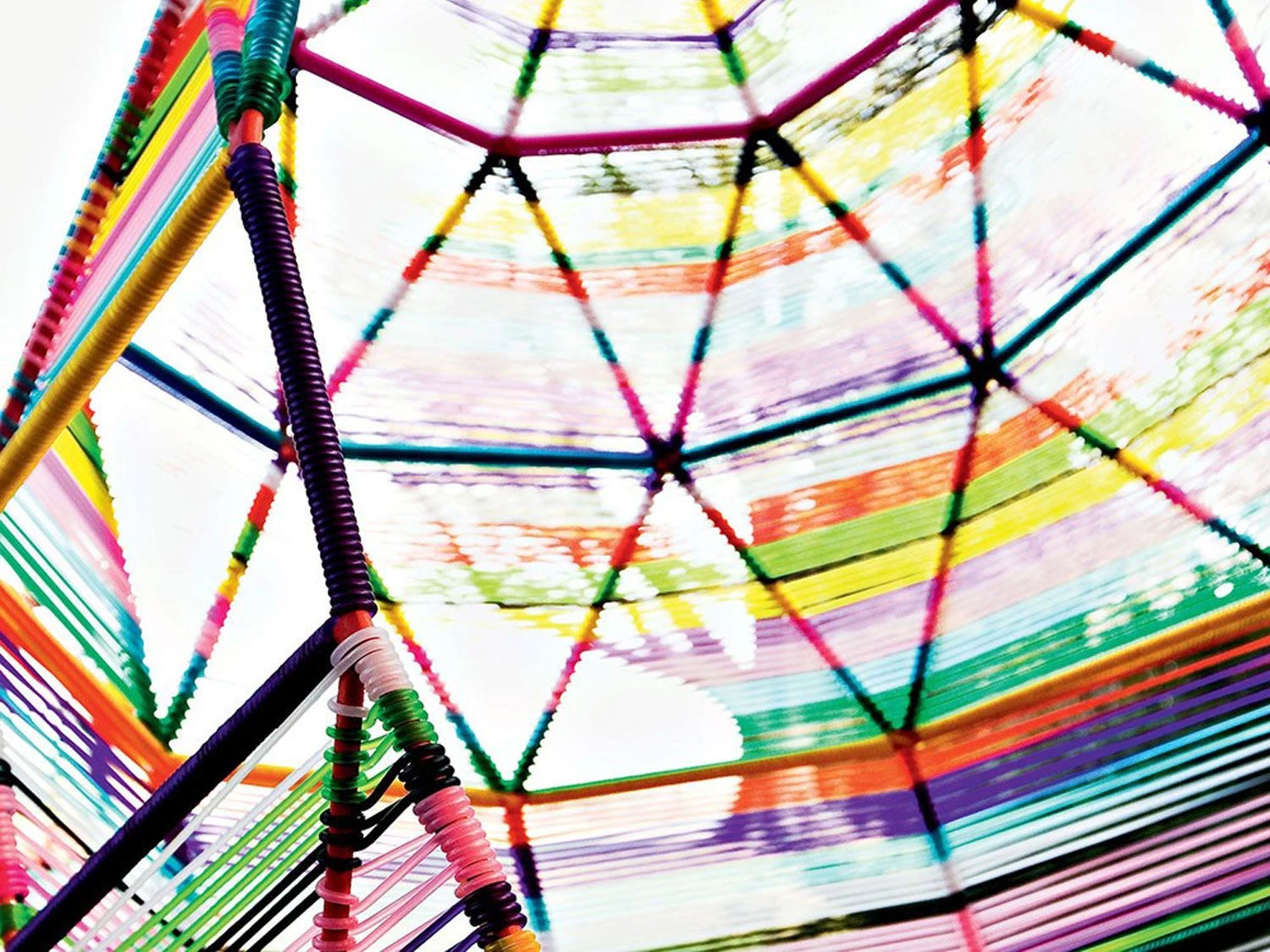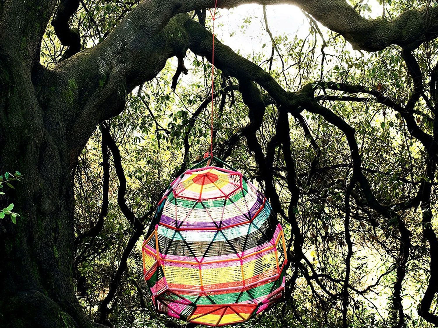 Tropicalia Cocoon is a suspended chair with steel structure and multicolor technopolymer wire strand designed by Patricia Urquiola for Moroso.