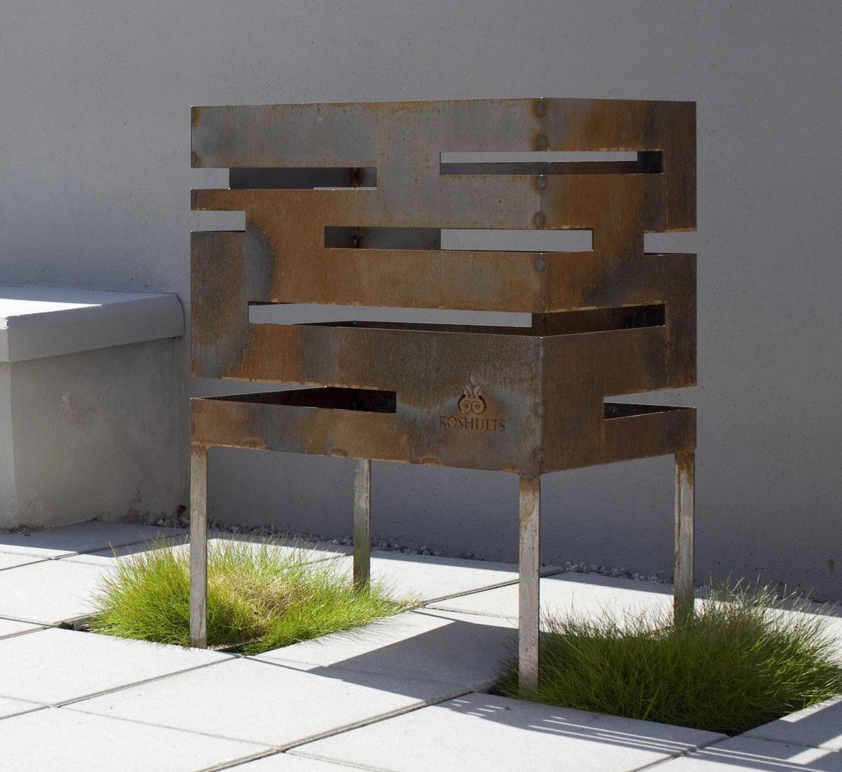 Designed by Cornelia Norgren for the Röshults brand, Urban is a brazier made of untreated steel.