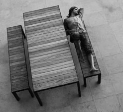 Durable materials, such as stainless steel and teak wood, are used to ensure maximum weather resistance and durability. The upholstered seat cushions are made of weather-resistant and easily washable fabrics, while the tables and seats are designed to adapt the outdoor spaces to suit different occasions. Shapes and details immediately identifiable in Vipp’s indoor furniture are echoed in the outdoor collection, but with the addition of new materials such as polyrattan, teak and textiles designed for the outdoors. The upholstery is made of 100% Ten Stars yarn, processed in Italy.