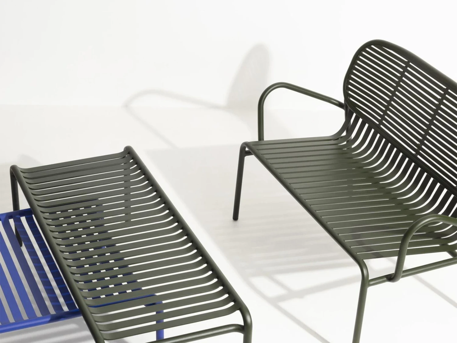 Week-End is an outdoor two seater sofa belonging to the homonymous collection created by the Brichet-Ziegler studio for Petite Friture. Made of aluminum with grainy epoxy paint, it is available in various colors.