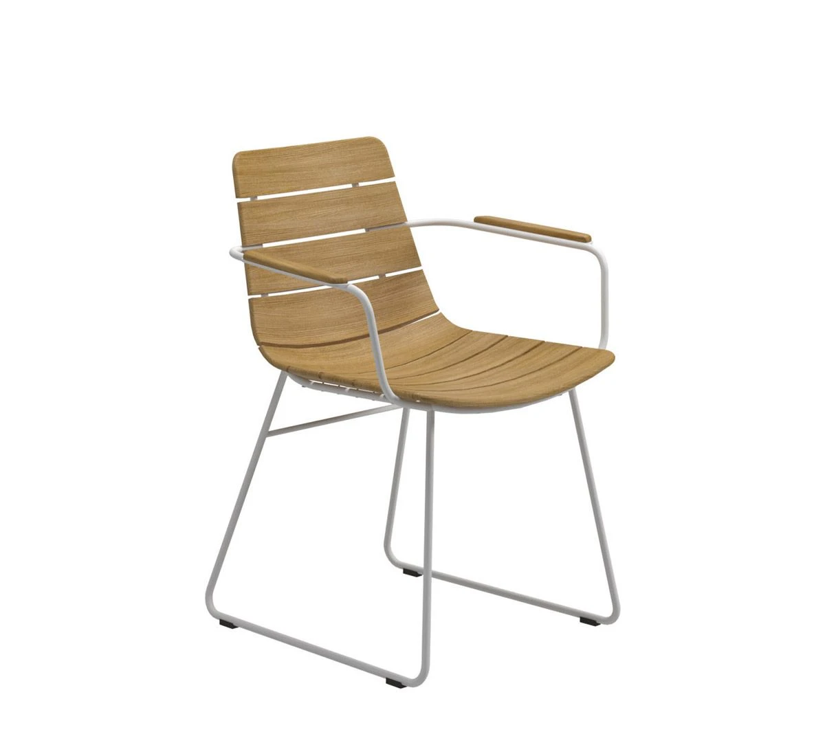 The chair designed to fit like a glove. Light, powder coated frames carry the signature, curved teak slats that define the design language of William. And where your hands meet the frame, once again soft teak provides the touch.