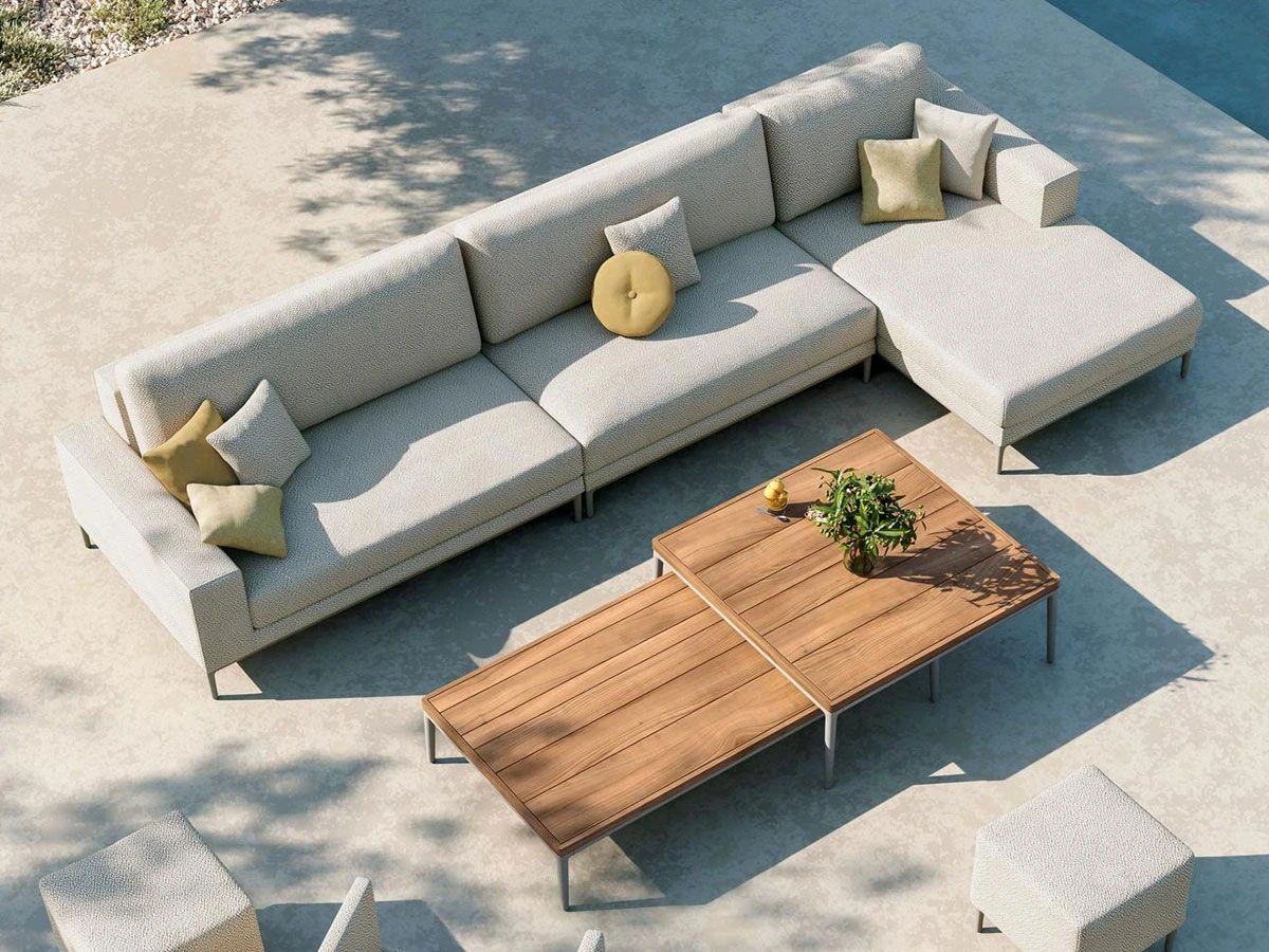 Each piece of furniture in the Zendo Sense collection exudes luxury and elegance, this collection is a reinterpretation of Zendo, an iconic collection by Manutti to which a new identity has been given. The carefully selected materials are made of durable, weatherproof pieces that exude luxury and show no distinction between interior and exterior design. This element is part of a vast collection consisting of modular sofas, linear sofas, coffee tables and armchairs all combinable with each other Zendo Sense is a versatile collection, perfect for any type of environment. This meridien is made with carefully selected materials, to last and resist the weather.